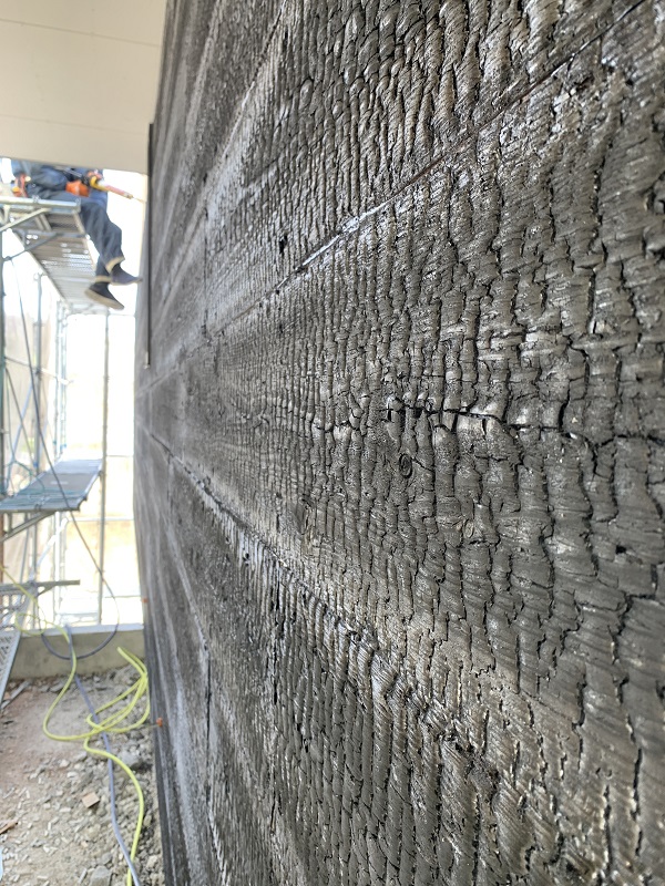 いよいよ仕上げ工程となり、外壁張りが進行しています。