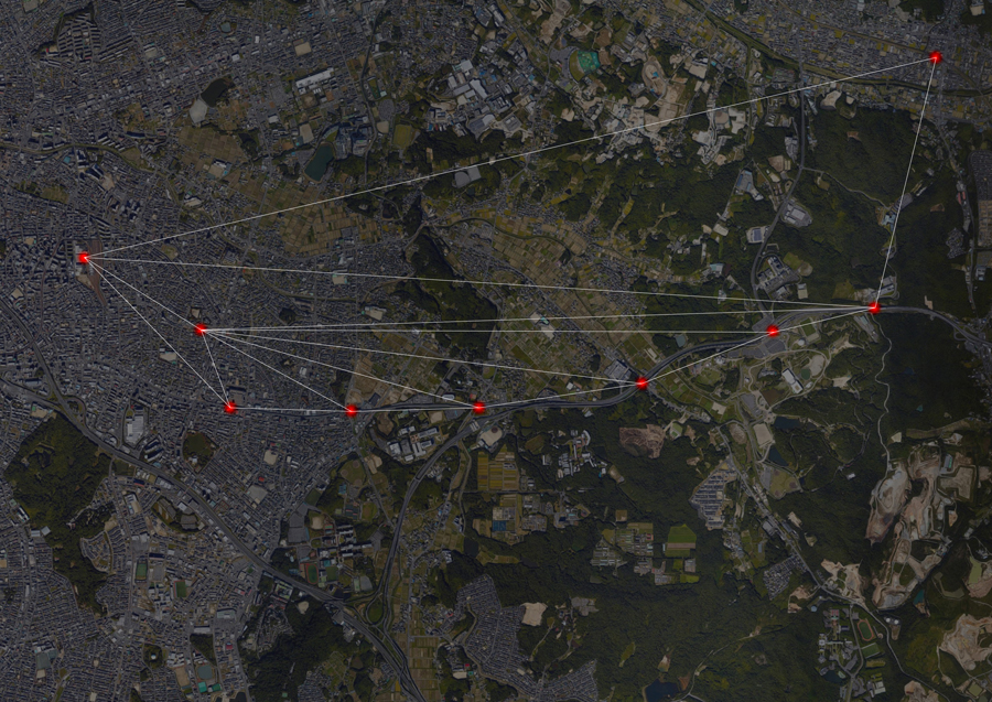 これらのプロット図を使って項目ごとにボロノイ分割することで各敷地から一番近い要素が分かるようになります。